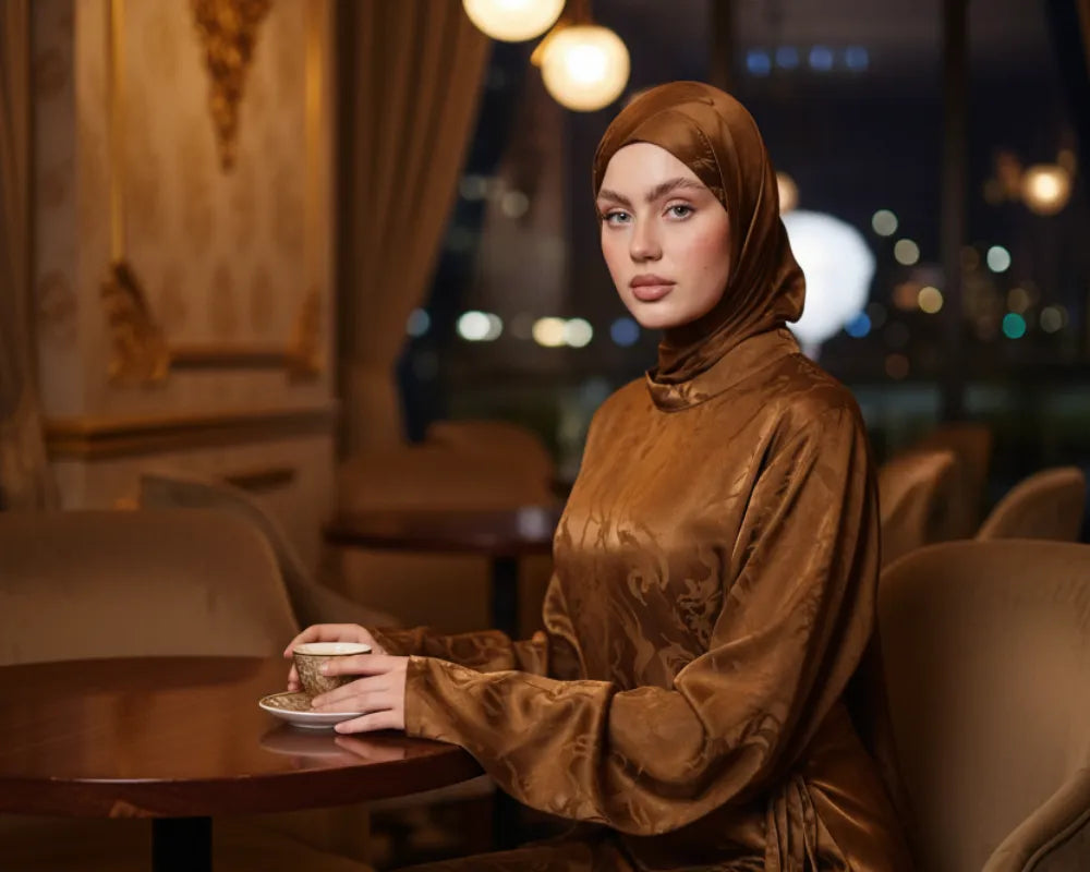 ALASİL Abaya – Luxury Cupra Abaya in Brown, Beige and Black Tones